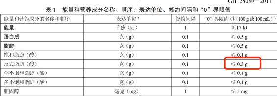 此外,《食品安全国家标准 预包装食品营养标签通则》(GB28050-2011)显示,当一款饮料的反式脂肪酸含量不超过0.3克/100克或0.3克/100毫升时,就可以标称“无或不含反式脂肪酸”。